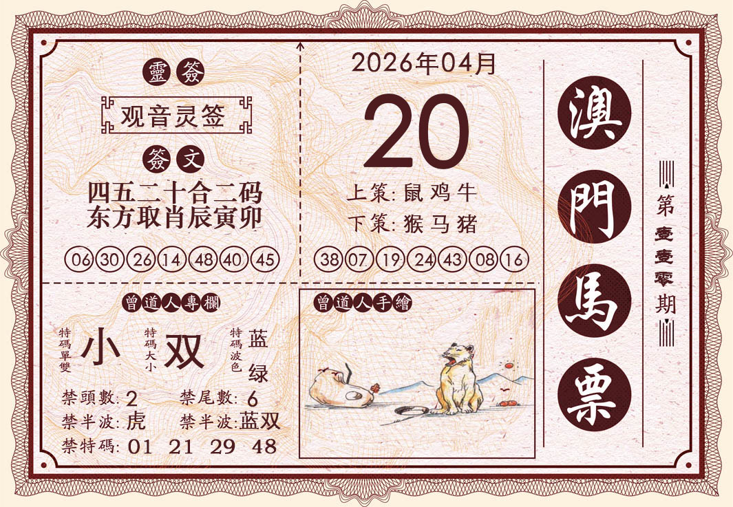 | 111期 | 鸡蛇牛兔 | 开:?00 |
