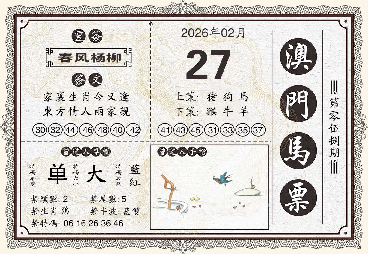 033期:奇人双波【红波蓝波】开:41牛准